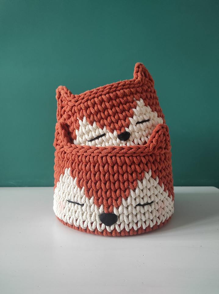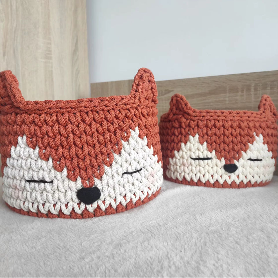 Handmade Fox Face Macrame Basket Cute Versatile Storage Solution for Kids Room Playroom Tabletop and Gift Use From India