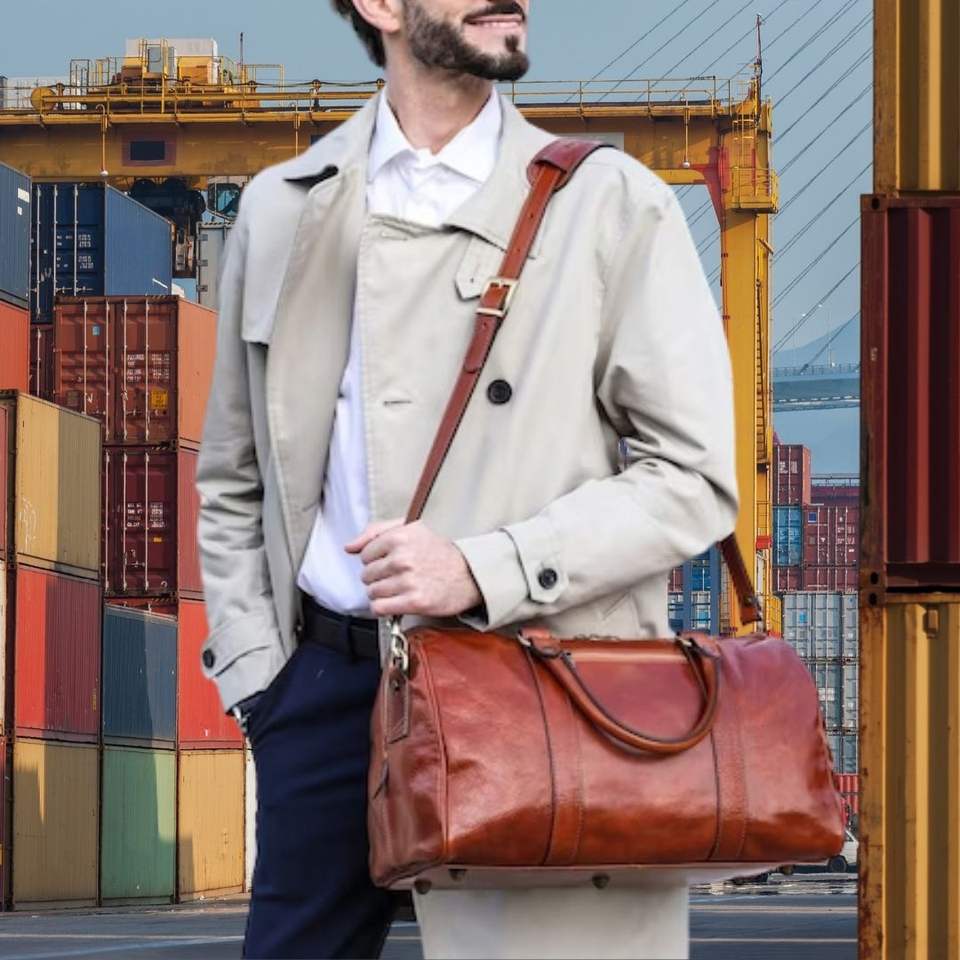 Handmade Full Grain Buffalo Genuine Leather Duffle Tote Bag Stylish Vintage Sport Gym Travel Bag Zipper Large Ladies