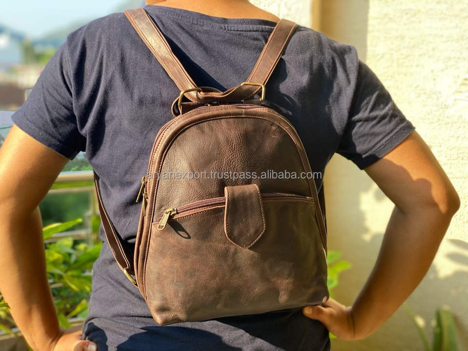 Handmade Full Grain Crunch Leather Backpack Two in One Messenger Bag Unisex