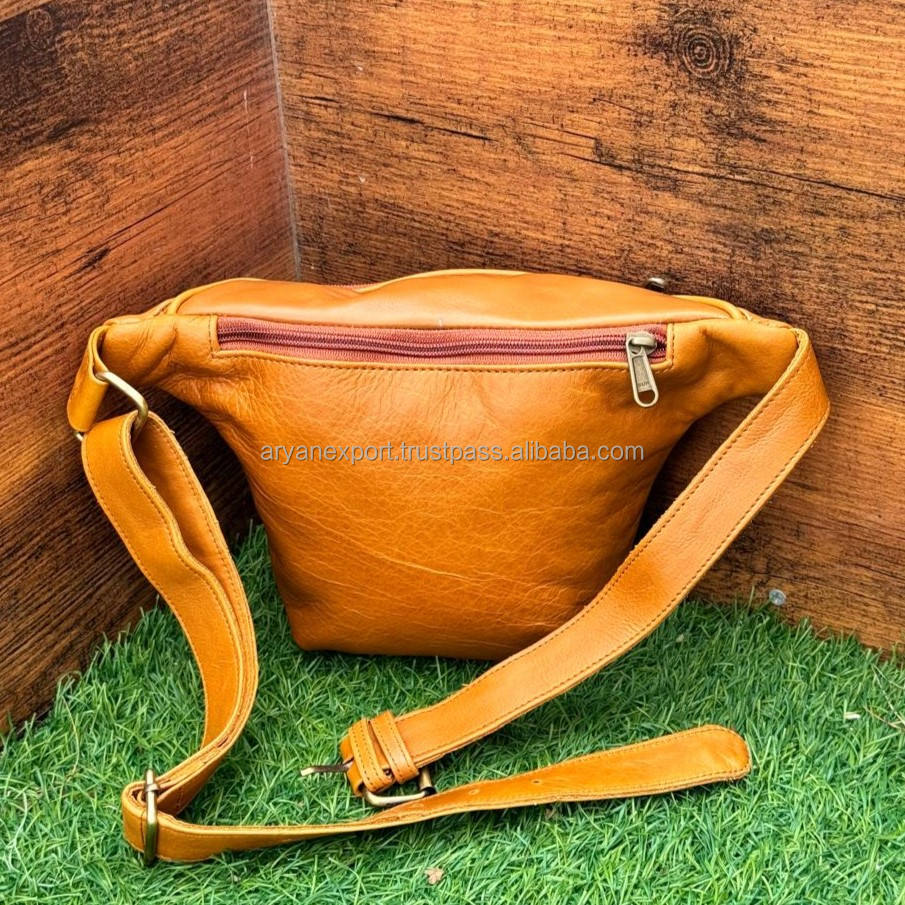 Handmade Full Grain Crunch Leather Waist Bag Genuine Leather Travel Pouch Premium Quality Adjustable Strap Fanny Pack for Unisex