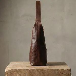 Handmade Full-Grain Leather Shoulder Bag | Minimalist Tote with Pocket Capacity Customizable Colors & Logo