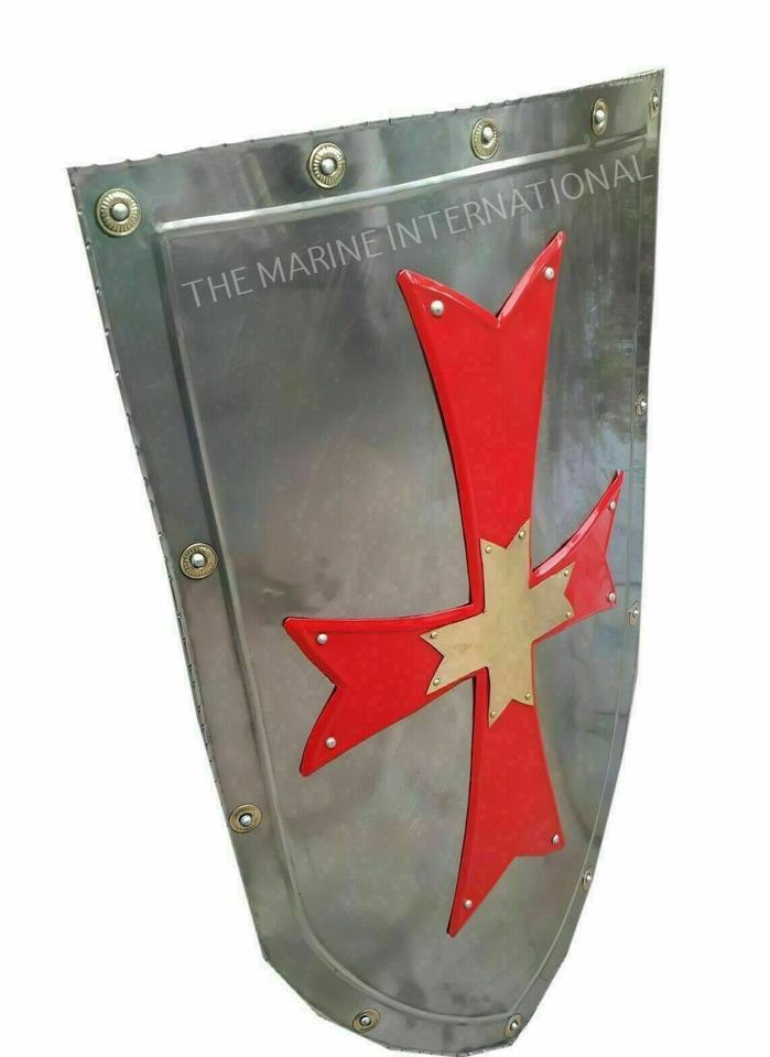 Handmade Full-Size Medieval Knights Templar Shield Solid Mild Steel Warrior Armor Battle Ready for Halloween Metal Novelty Gift