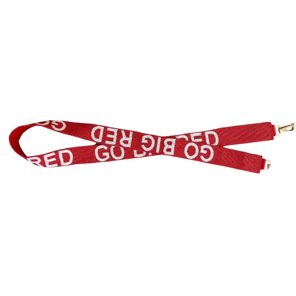 Handmade GO BIG RED Beaded Purse Strap Vibrant Cotton Accessory Detailed Embroidered Beadwork College Fans' Game Days Gift