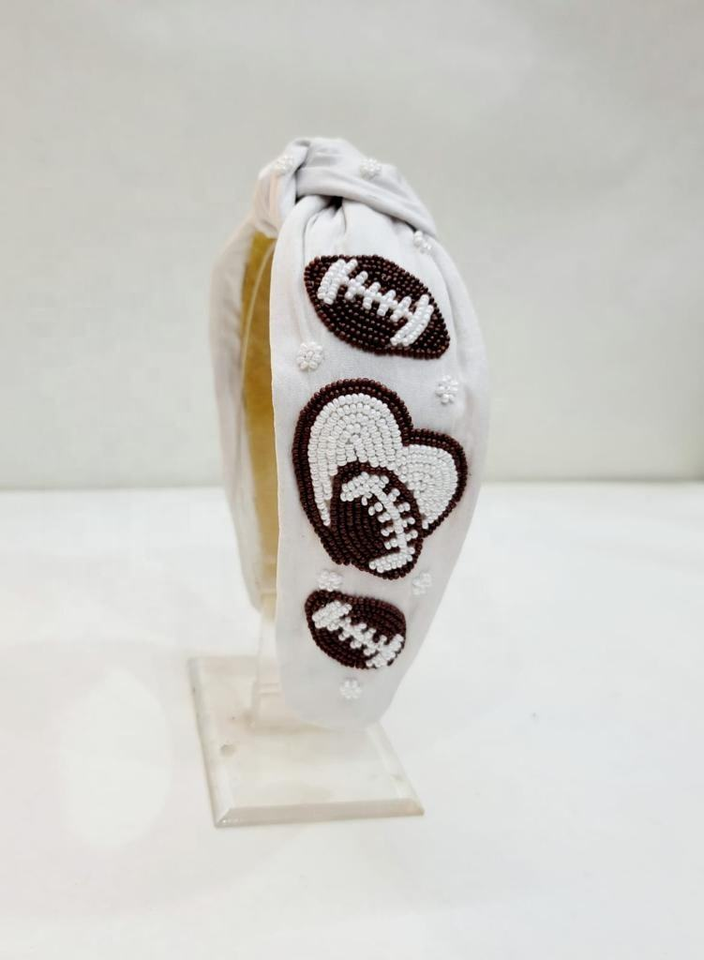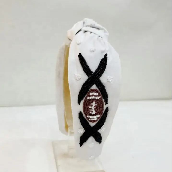 Handmade Gameday Theme Beaded Headband with Pearl Stylish Daily Wear Accessory for Girls and Kids Trendy Velvet Flower Pattern