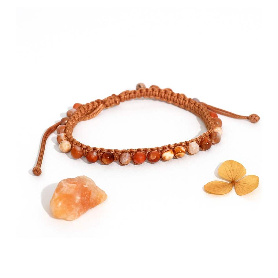 Handmade Gardenia Bracelet in Brown Orange Shades Best Adjustable Cord Jewelry with High Quality Beads for Women and Girls