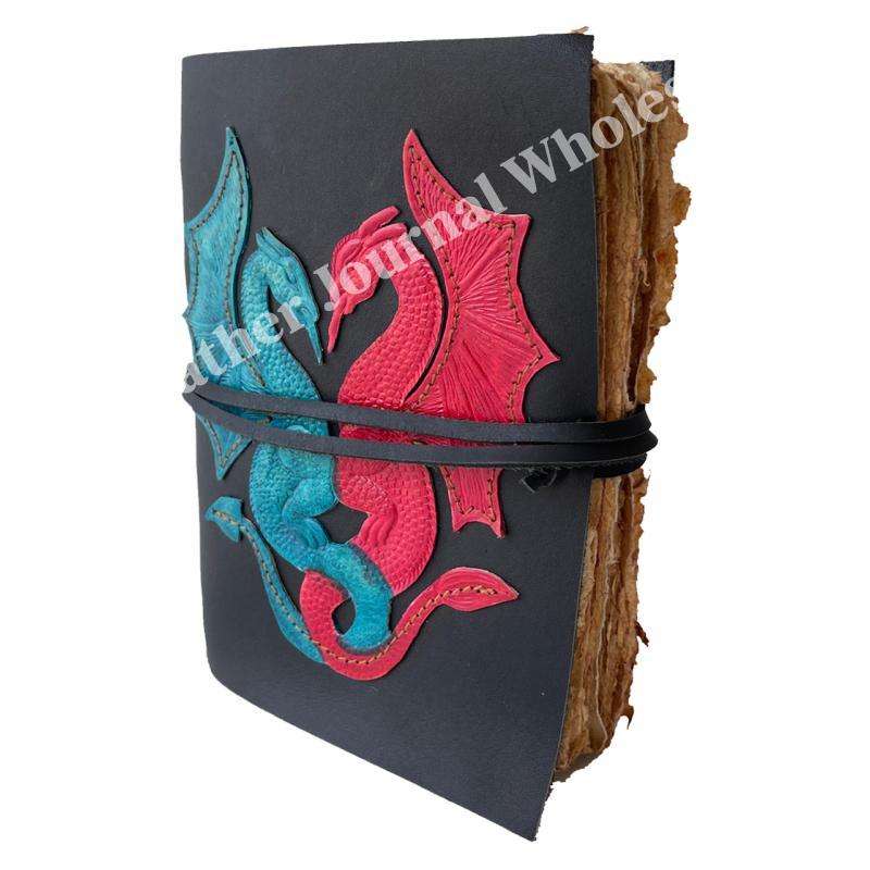 Handmade Genuine Leather Black Softcover Double Dragon Journal Writing Notebook Bound Daily Notepad For Unisex Blank Pages Diary