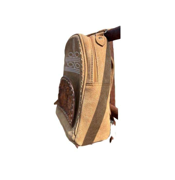 Handmade Genuine Leather Bohemian Shoulder Sling Bag for Women Brown Zipper Animal Print Pattern Durable Eco-Friendly Spring
