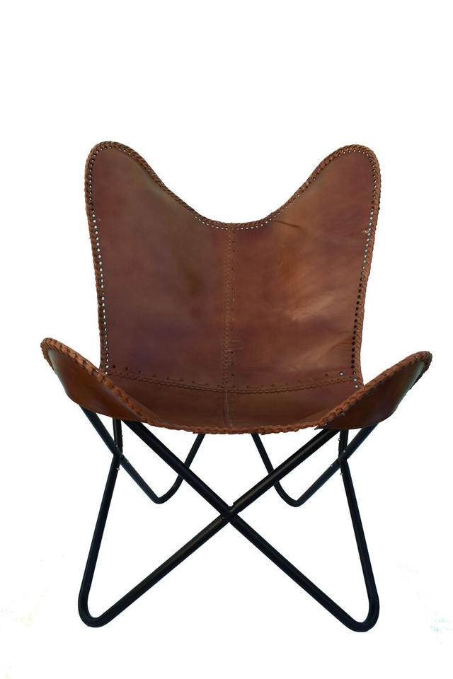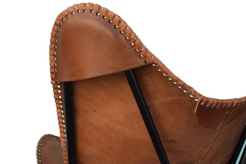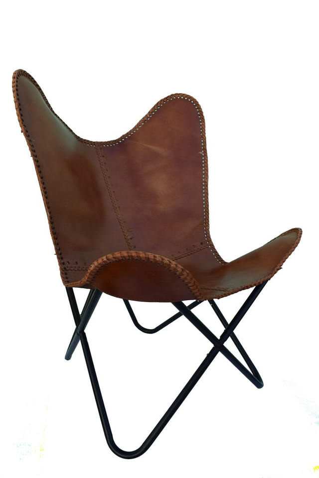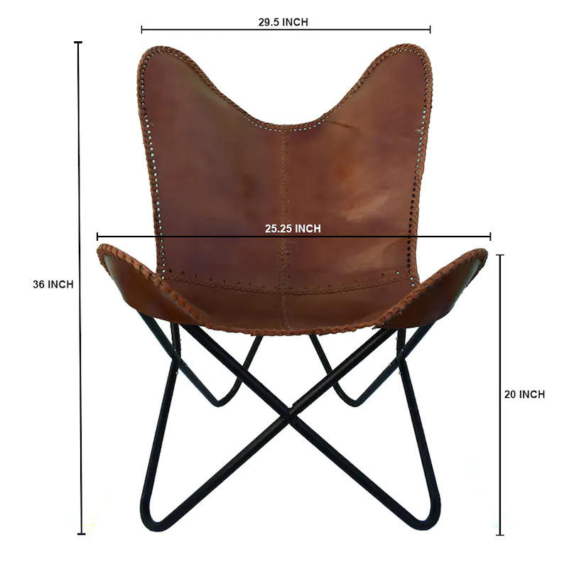 Handmade Genuine Leather Butterfly Reclining Chair Cover Customizable Leisure Chair for Home Office Living Room Iron Frame for