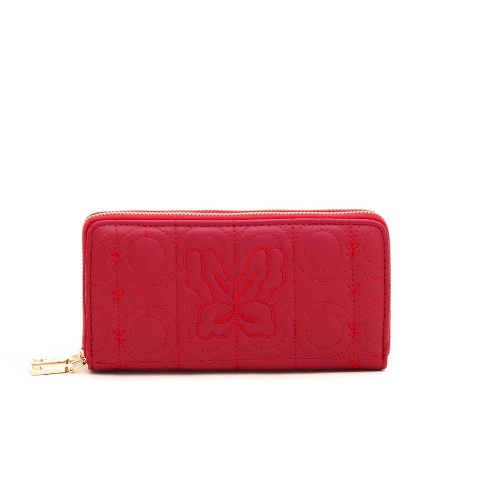 Handmade Genuine Leather Ladies Wallet P70803 Red Luxury Style with Logo RFID Feature Zipper Closure Chain Decoration