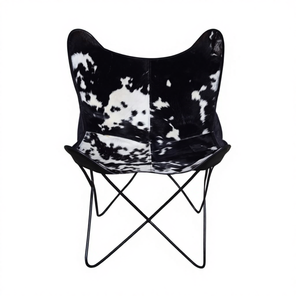 Handmade Genuine Leather and Iron Butterfly Chair with Tufted Design for Home Office Home Bar Apartment and Living Room
