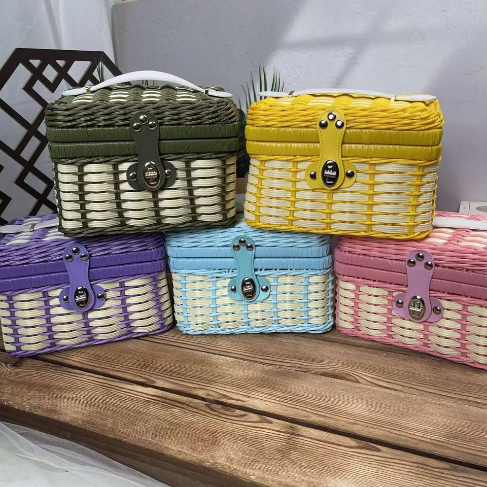 Handmade Gift Baskets Rattan Plastic PP-Color Matching Storage Boxes Woven Suitcase Hanging Gift Box for Kitchen Food Storage