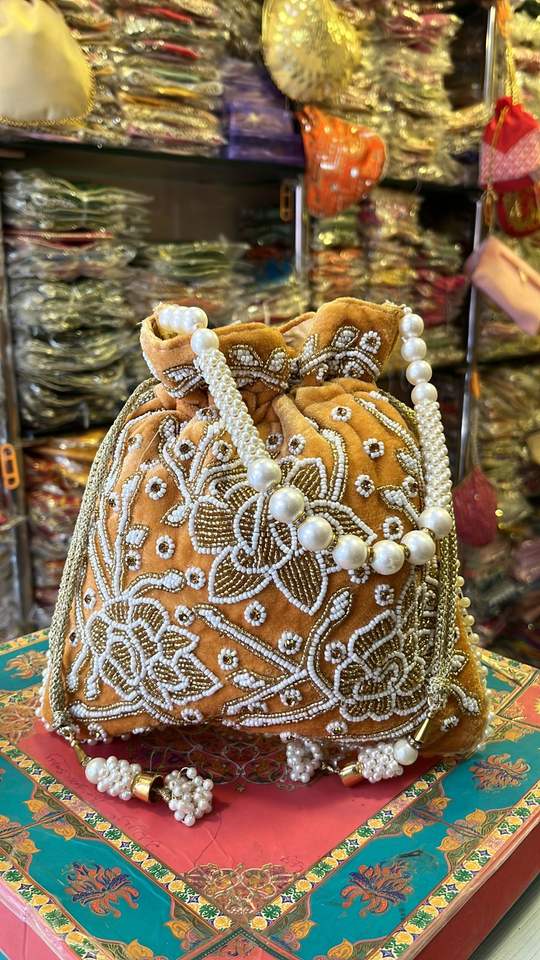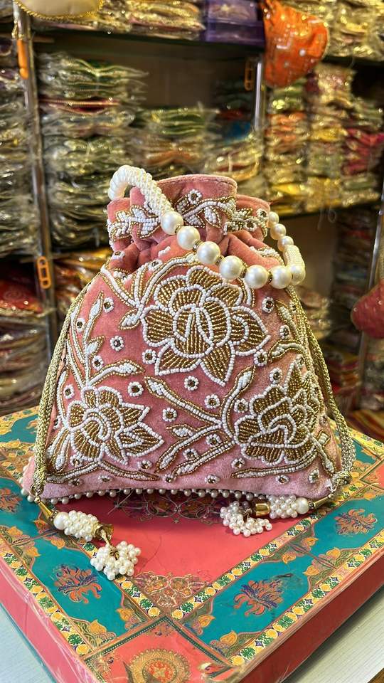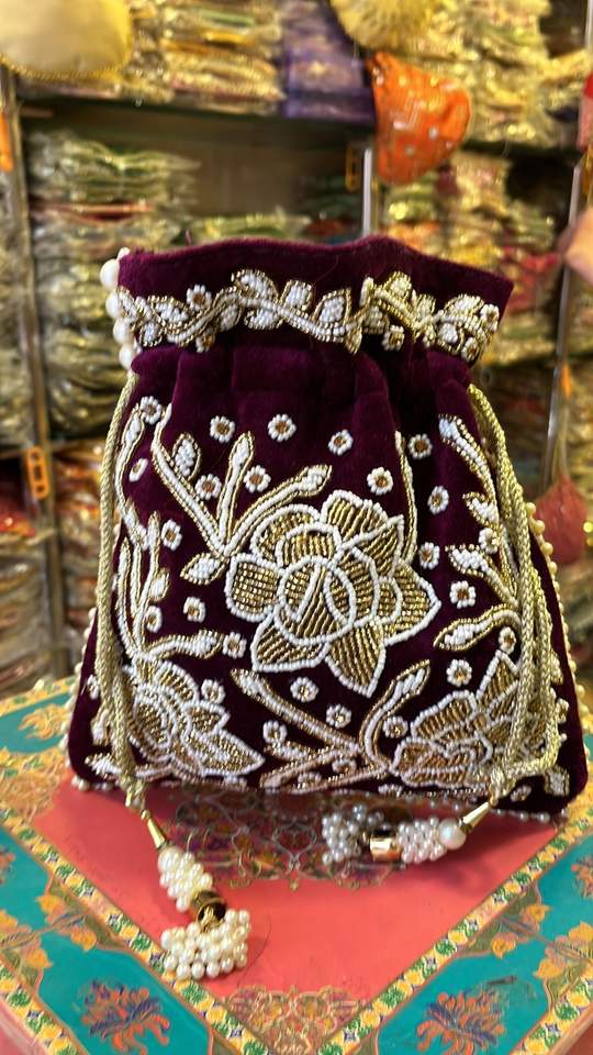 Handmade Gift Party Bags Wrist Handbag Coin Potli Bags Indian Handmade Lotus Embroidery Ethnic Wedding Women Bags