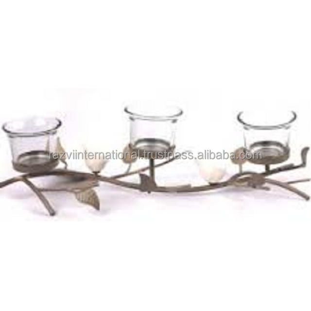 Handmade Gold Candle Votive Set of 2 Tall Modern Metal Candlesticks Tea Light Holders for Home Decoration Printed Aluminum