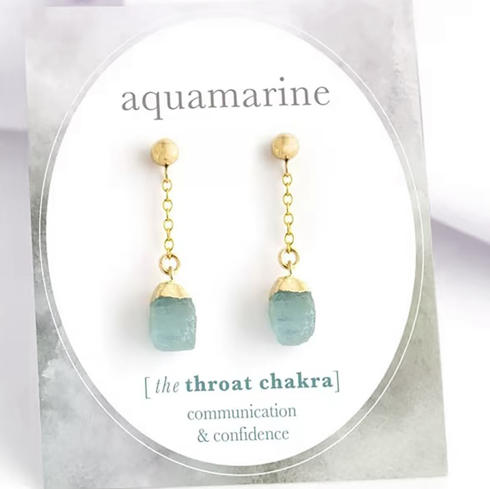 Handmade Gold Electroplated Raw Aquamarine Gemstone Chain Dangle Earrings - Wholesale Drop Earrings for Women