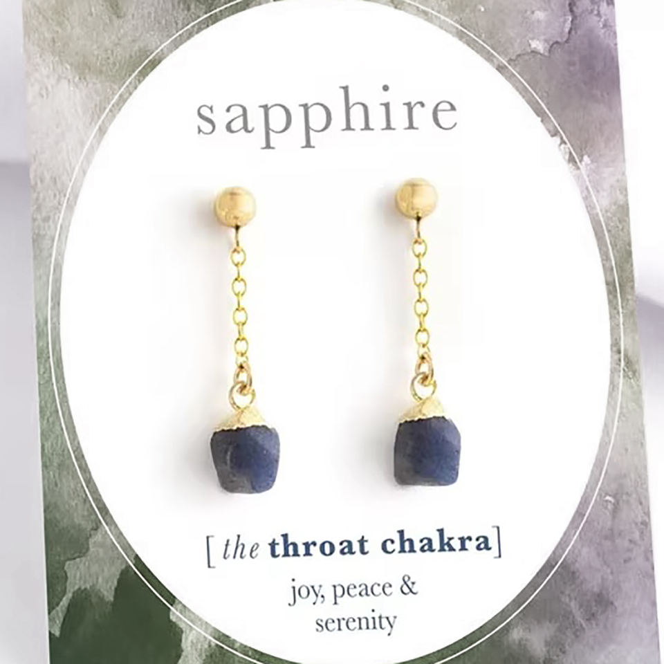 Handmade Gold Electroplated Raw Sapphire Gemstone Chain Dangle Earrings - Wholesale Drop Earrings for Women