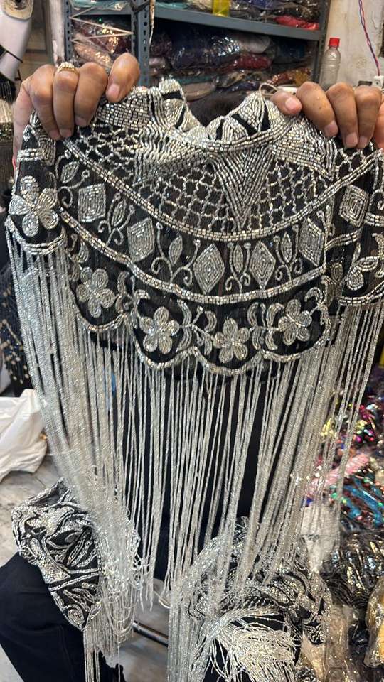 Handmade Gold Geometric Textured Design Evening Cape Long Fringed and Beaded Sequined and Embroidered Plus Size Party Wear