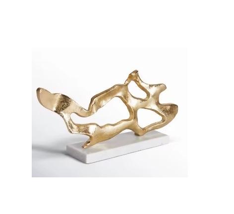 Handmade Gold Leaf Solid Base Aluminum Sculpture Modern Artistic Design for Living Room Decor Travel Wedding Gift Customizable