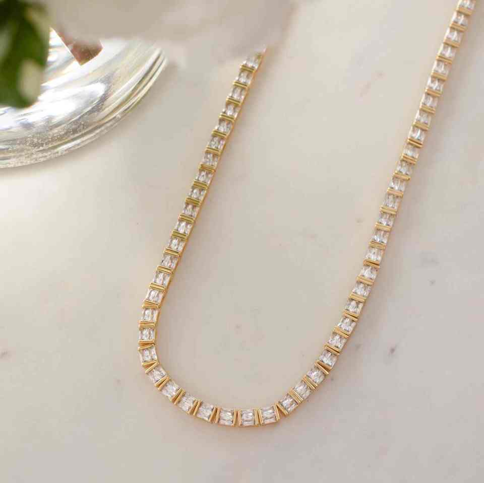 Handmade Gold Plated 925 Silver Choker Baguette Tennis Necklace for Wedding Statement Jewelry Necklace, Moissanite Diamond