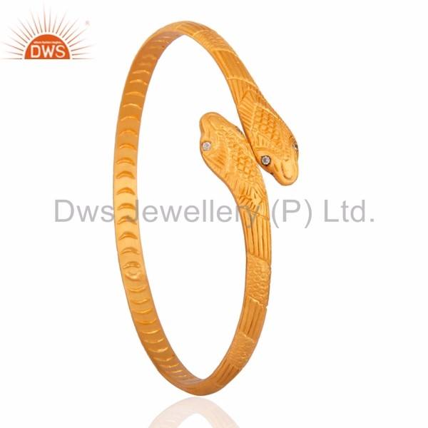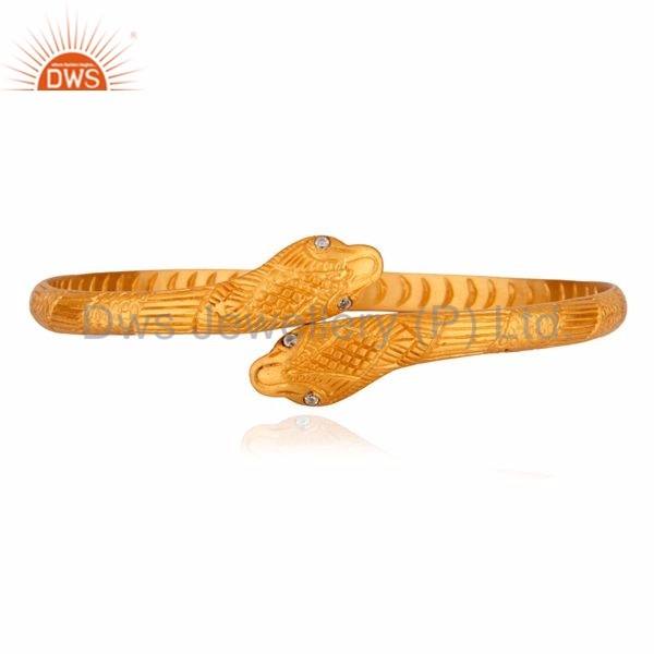Handmade Gold Plated Brass Cubic Zirconia Gemstone Matte Finish Adjustable Snake Design Bangle Jewelry Manufacturer