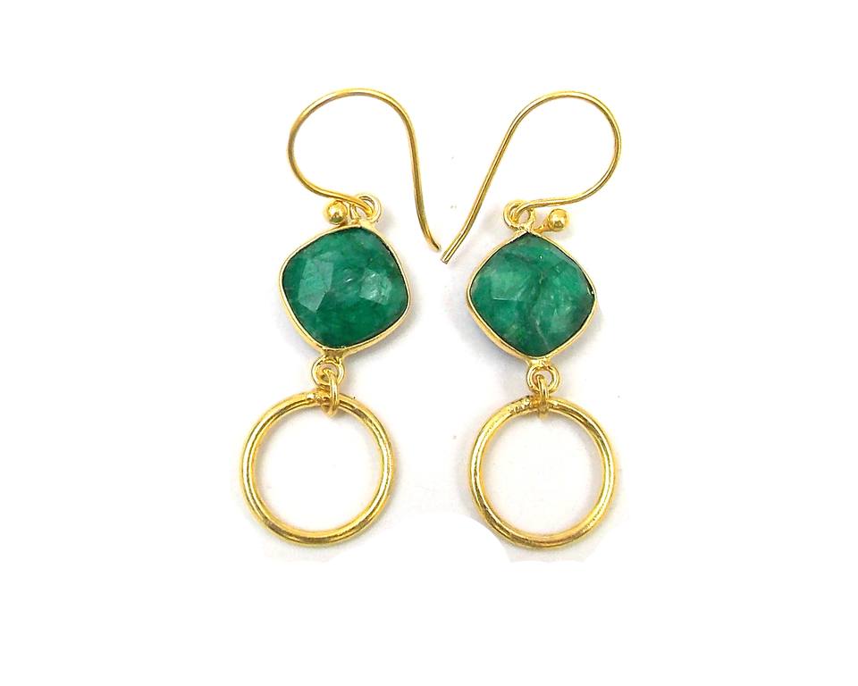 Handmade Gold-Plated Fashion Hoop Set with Natural Multi-Gemstone Earrings Beautifully Dyed Emerald Birthstone Brass Material