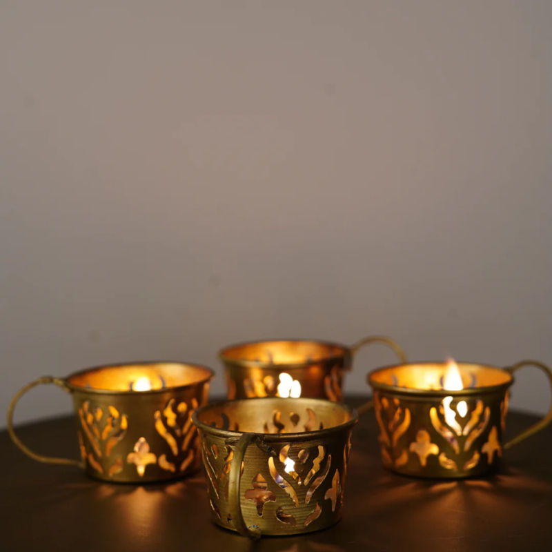 Handmade Gold Plated Metal Iron Tea Light Holder Premium Quality Indoor Tableware Home Decor T-Light Holder for Events