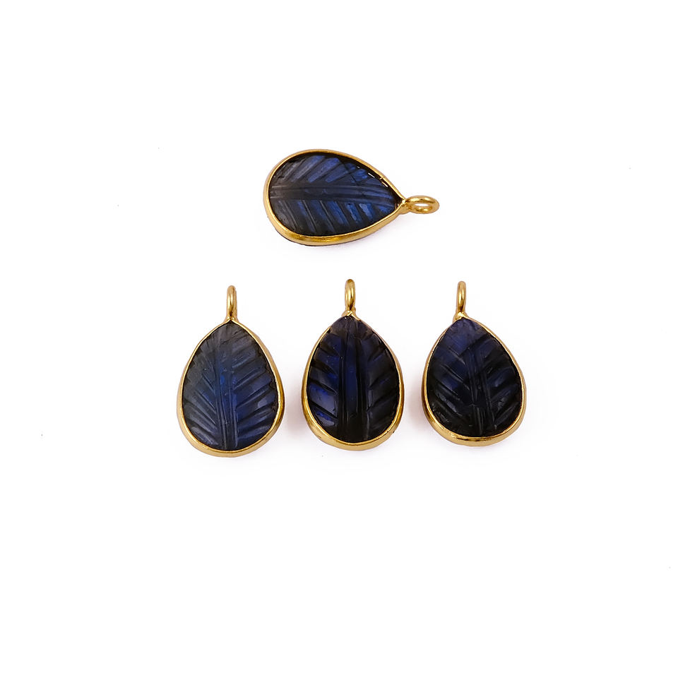 Handmade Gold Plated Teardrop Pendant Labradorite Gemstone Leaf Carved with Blue Flash Crystal Fashion Pendants & Charms Jewelry
