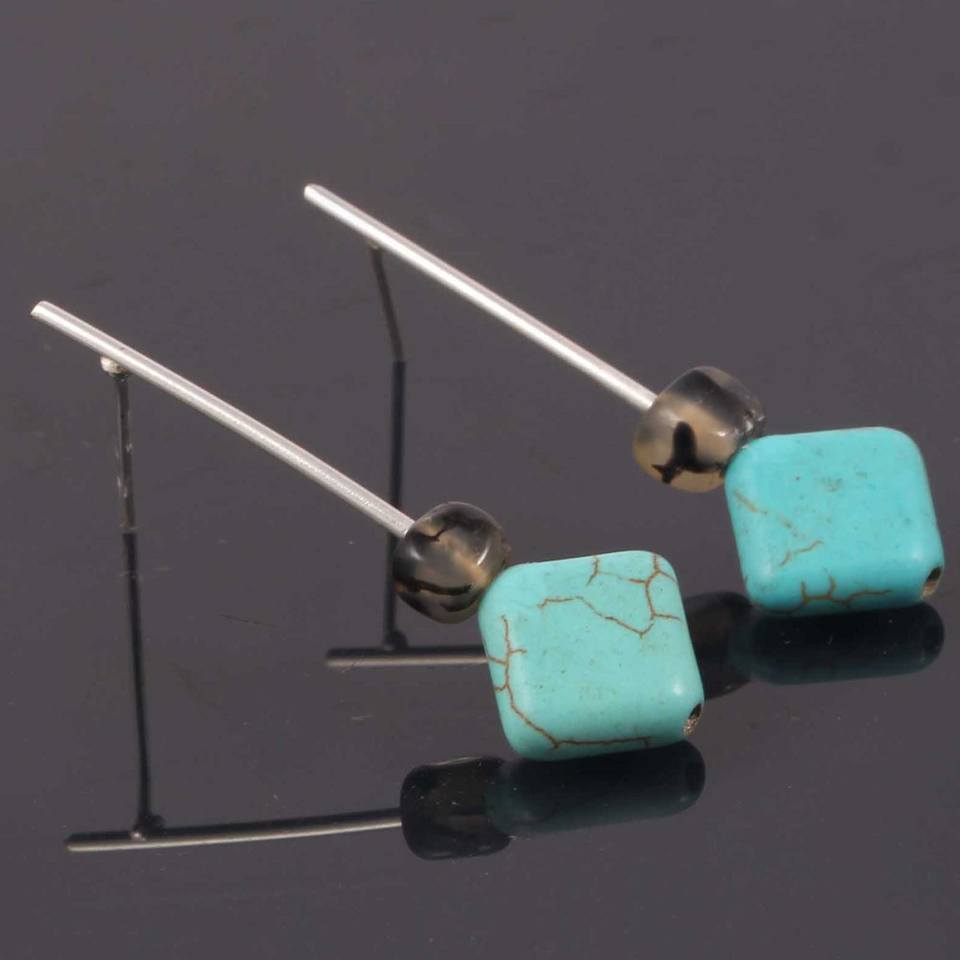 Handmade Gold Plating Long Dangler Earring With Smokey & Turquoise Gemstone In Cushion Cut Pretty Lightweight Earring For Girls