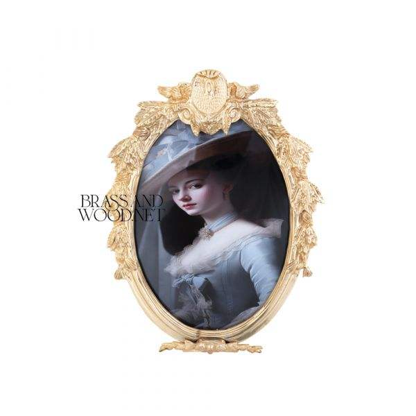 Handmade Gold Solid Brass Oval Frame with Elegant Lady Portrait in Hat