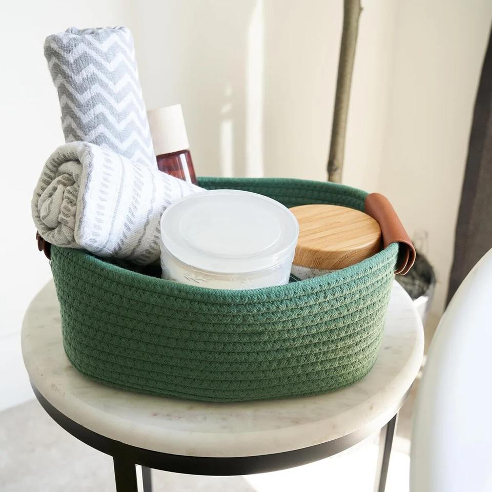 Handmade Green Basket Stylish Bathroom Storage For Toiletries Skincare Towels And Everyday Organization Wholesale From India