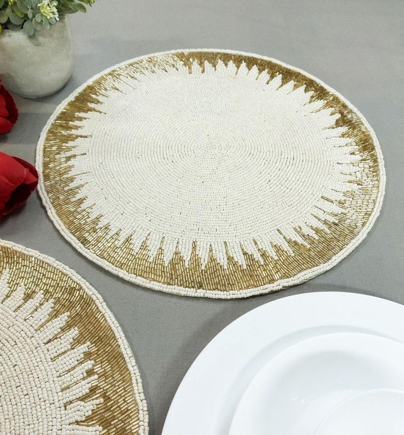 Handmade Green Beaded Placemats Floral Pattern Decorative Table Mats Charger for Dining Centerpiece Decor