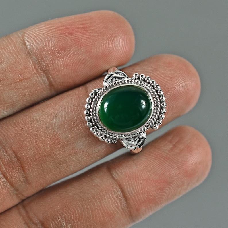 Handmade 925 Sterling Silver Ring Classic Green Onyx Gemstone Oval Cut Natural Crystal Wedding Anniversary Gift for Women