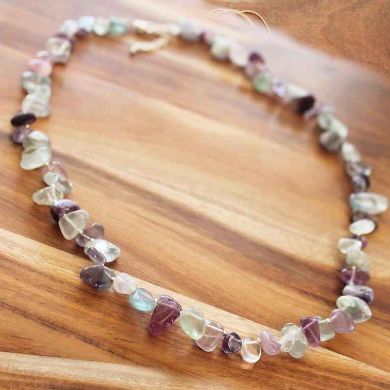 Handmade Green Purple Beaded Necklace Natural Faceted Statement Gemstone Fluorite Mid Length To Long Necklace Elegant Jewelry