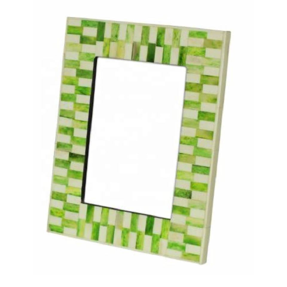 Handmade Green & White 5x7" Picture Frame in Mdf & Natural Bone Showcase Display Table Home Decor Bone Picture Frame from India