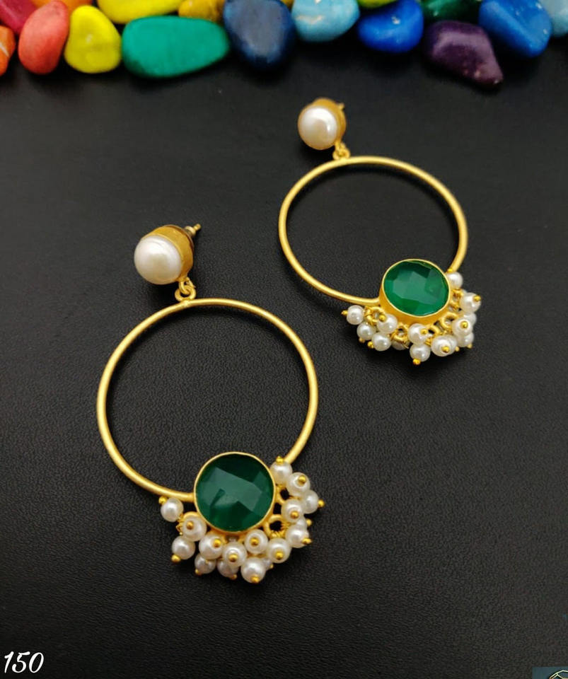 Handmade Green onyx and pearl earring Lapis lazuli and pearl earrings, 2023 fashion gold plated hoop jewelry at wholesale price