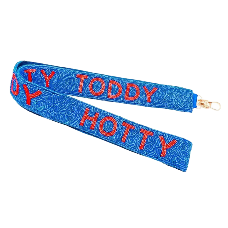 Handmade HOTTY TODDY Beaded Purse Strap Red Blue Cotton Fabric Embroidered Ole Miss Rebels Team Spirit Customizable DIY Game