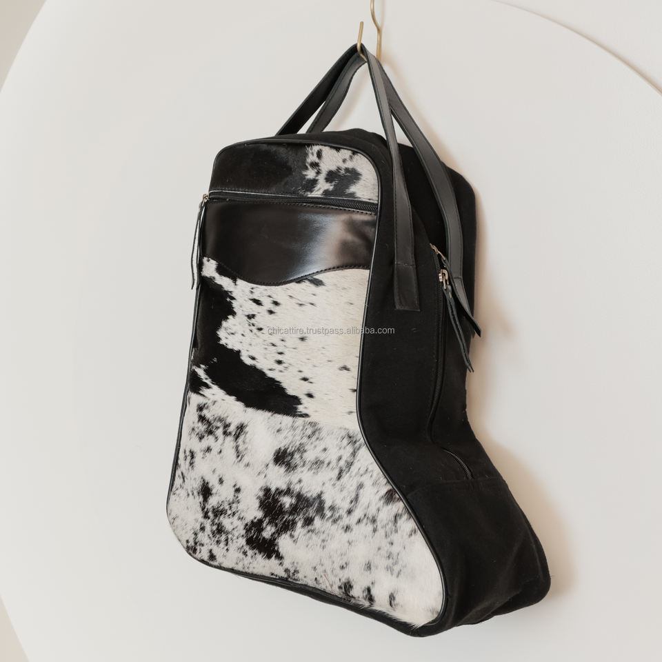 Handmade Hair on Cowhide Leather Shoe Bags for Men & Women Personalized Genuine Leather Hiking Boot Bag Custom Shoe Travel Bag