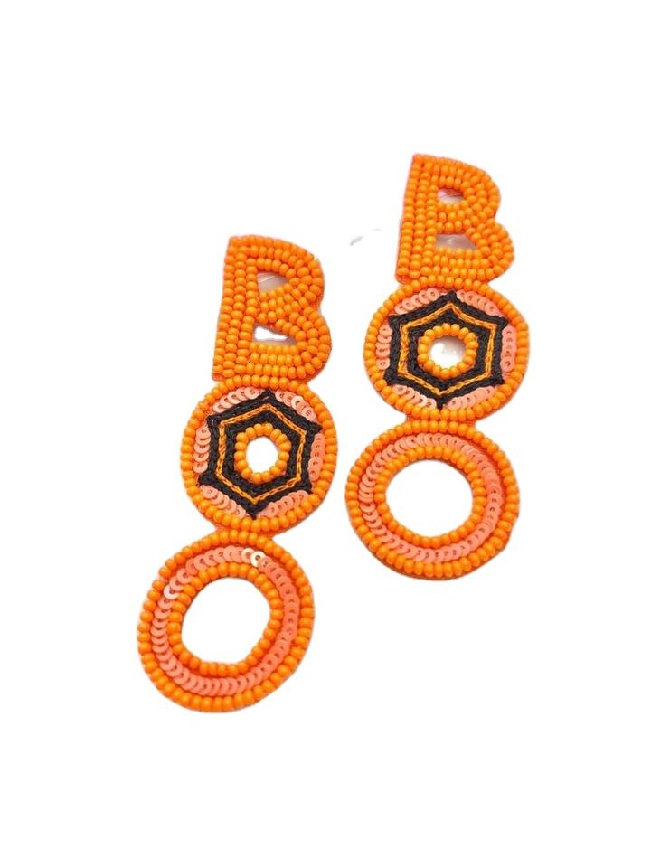Handmade Halloween BOO Seed Beaded Huggie Earrings Classic Post Design with Pearl Diamond Clip-on From India Fall Collection