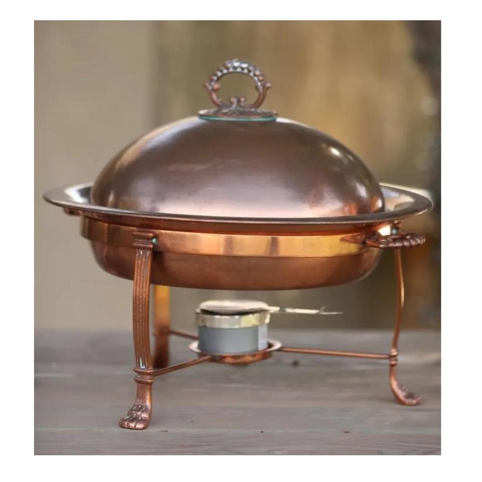 Handmade Hammered Copper Chafing Dish with Stand Round Buffet Food Warmer for Hotel Wedding & Catering.