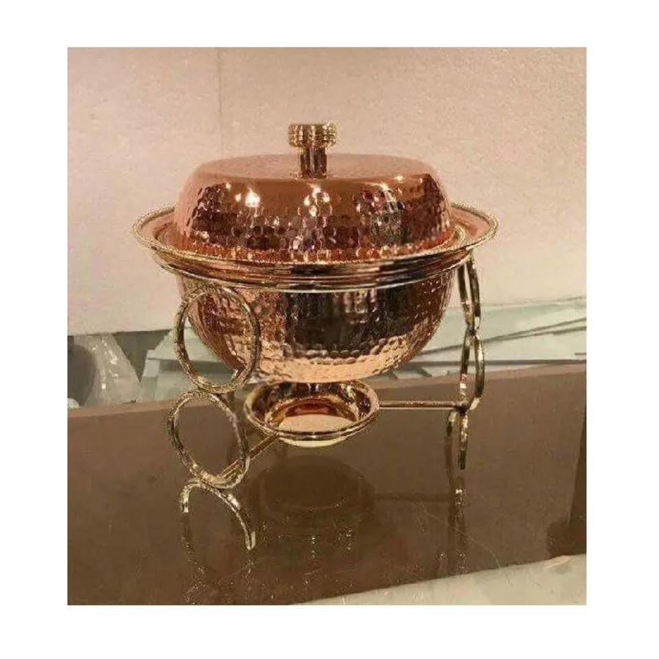Handmade Hammered Copper Chafing Dish with Stand Round Buffet Food Warmer for Hotel & Catering.