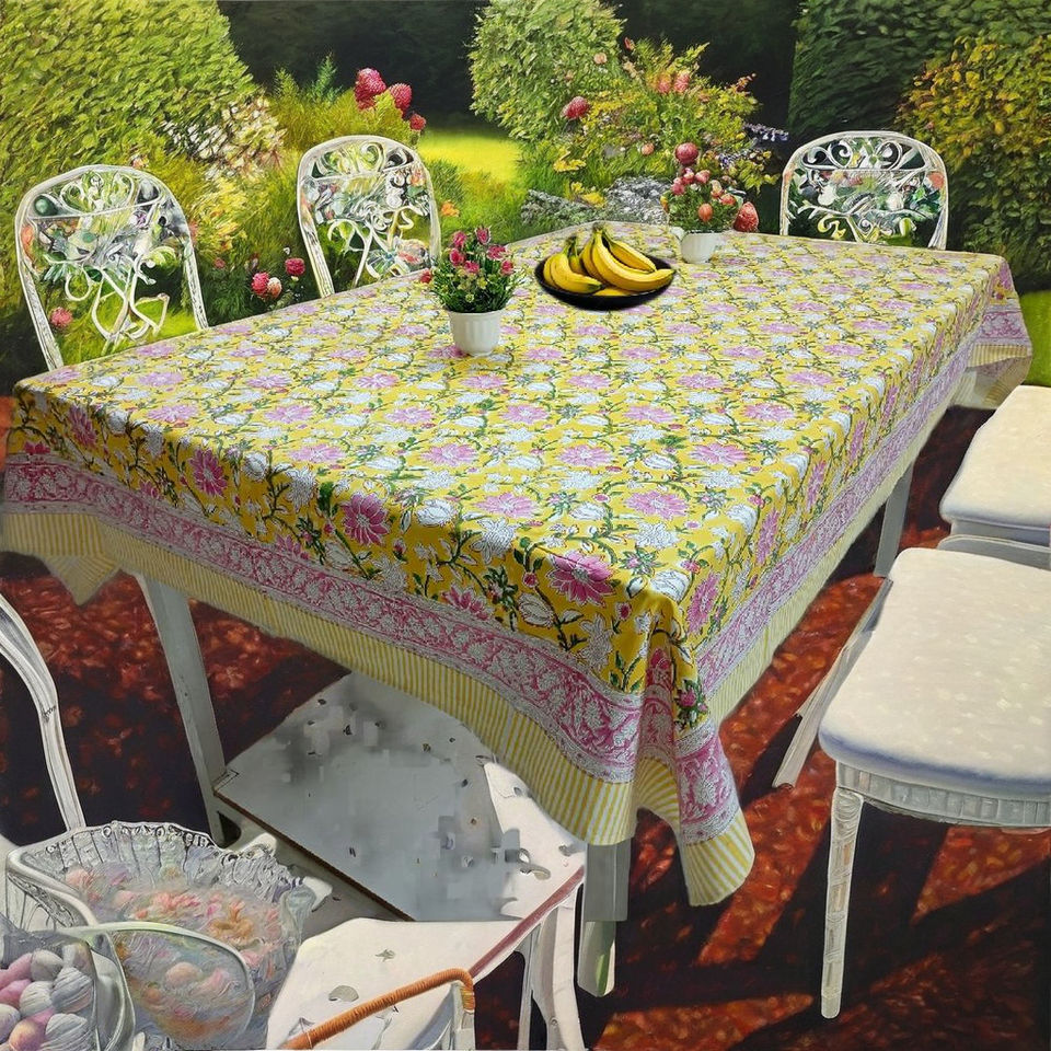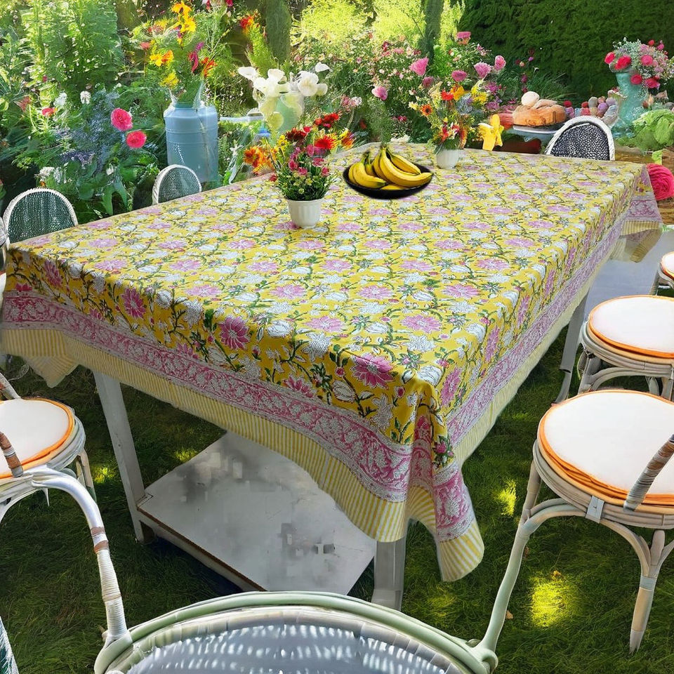 Handmade Hand Block Print Floral Rectangular Cotton Tablecloths-Eco-Friendly Durable Modern Design India Manufacturer