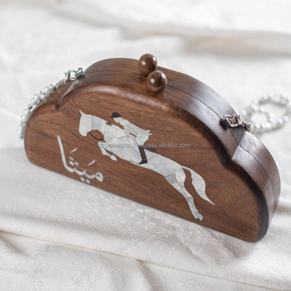Handmade Handbag Clutch Greatest Mother of Pearl Inlay Wooden Buraq Ladies Handbag