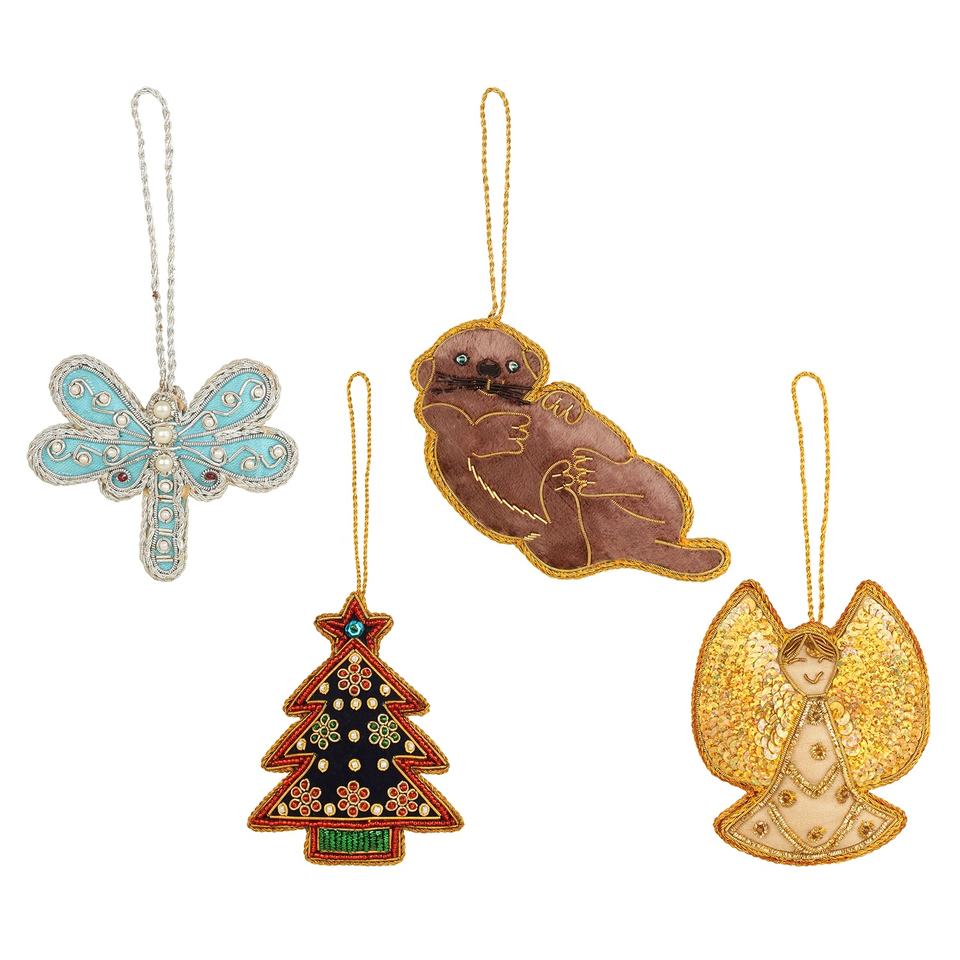 Handmade Christmas Decorations Ornament Customizable Velvet Satin Santa Socks Embroidered Beaded Giraffe Elephant Tree