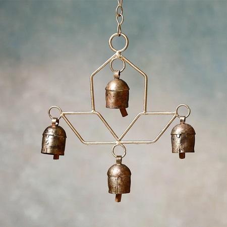 Handmade Copper-Coated 4 Bell Gulab Chimes Festive Christmas Jingle Bells Door Decoration Metal Wall Hangings Christmas Product