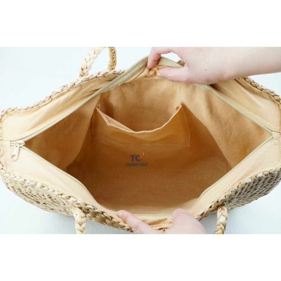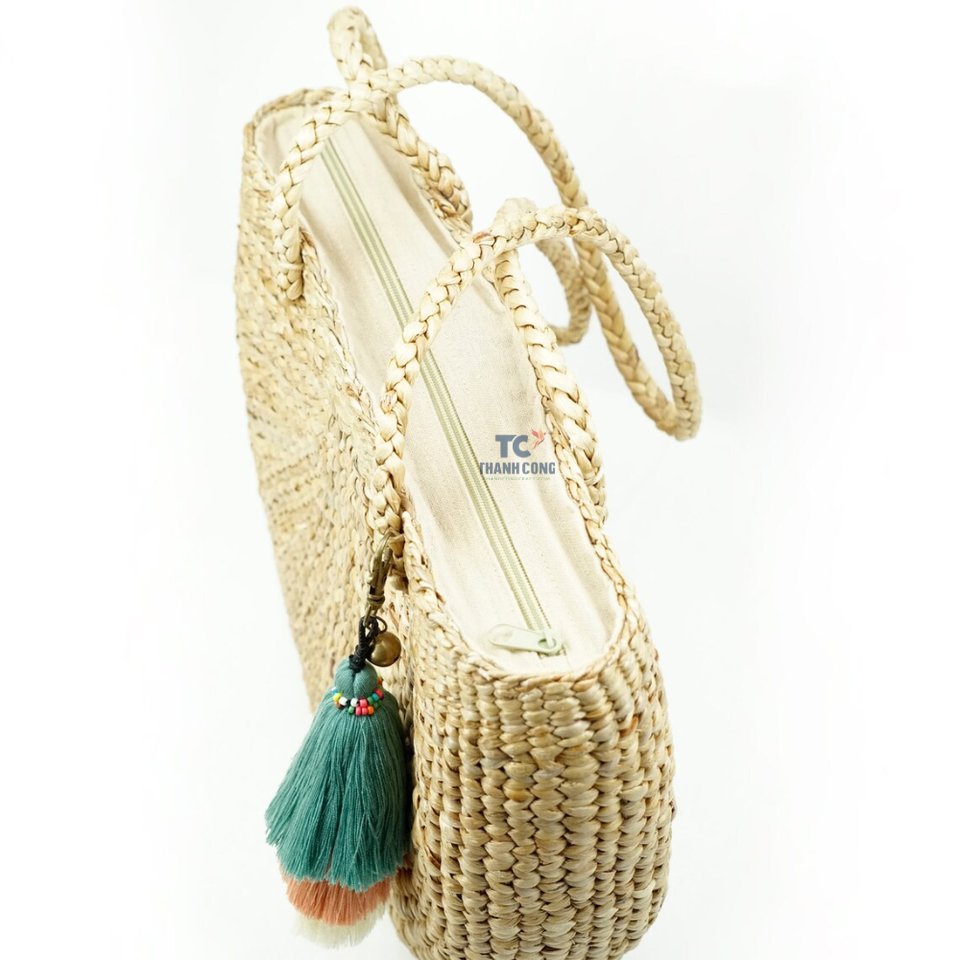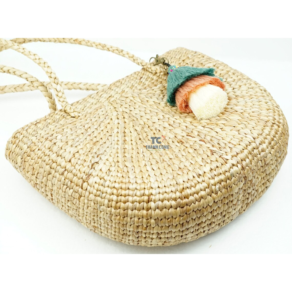 Handmade Hard Straw Bags Basket Vietnam Water Hyacinth Natural Vegan Bags With Pastel Keychain