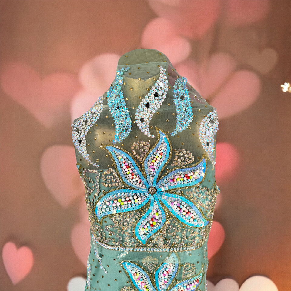Feature:Heavy Beaded Net Lace + Silk Fabric