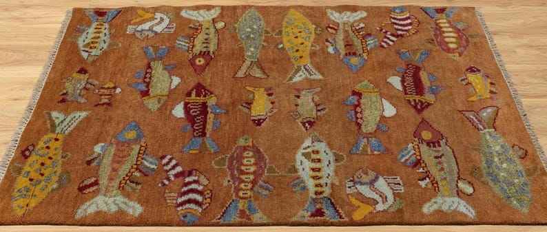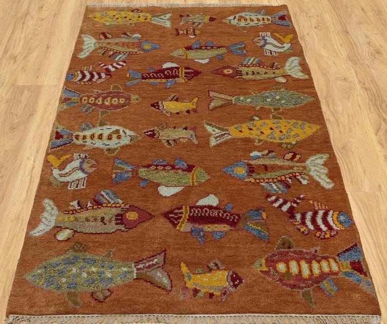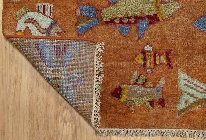 Products Name Fish Design:High Quality Newzeeland Wool Antique Hand Knotted Rugs 8x14 9x12