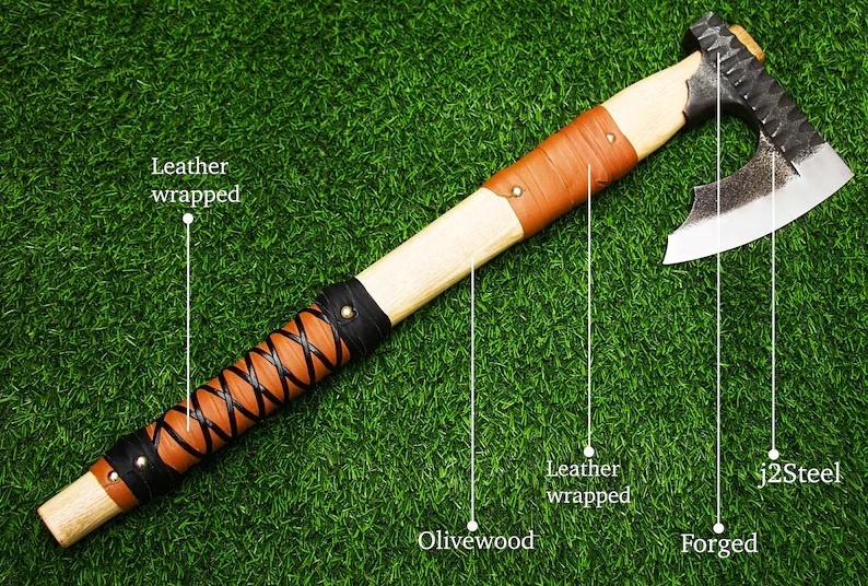 Handmade High Carbon Steel Axe DIY Grade Hatchet with Ash Wood Handle and Fine Leather Sheath Viral Hot Selling Custom Product