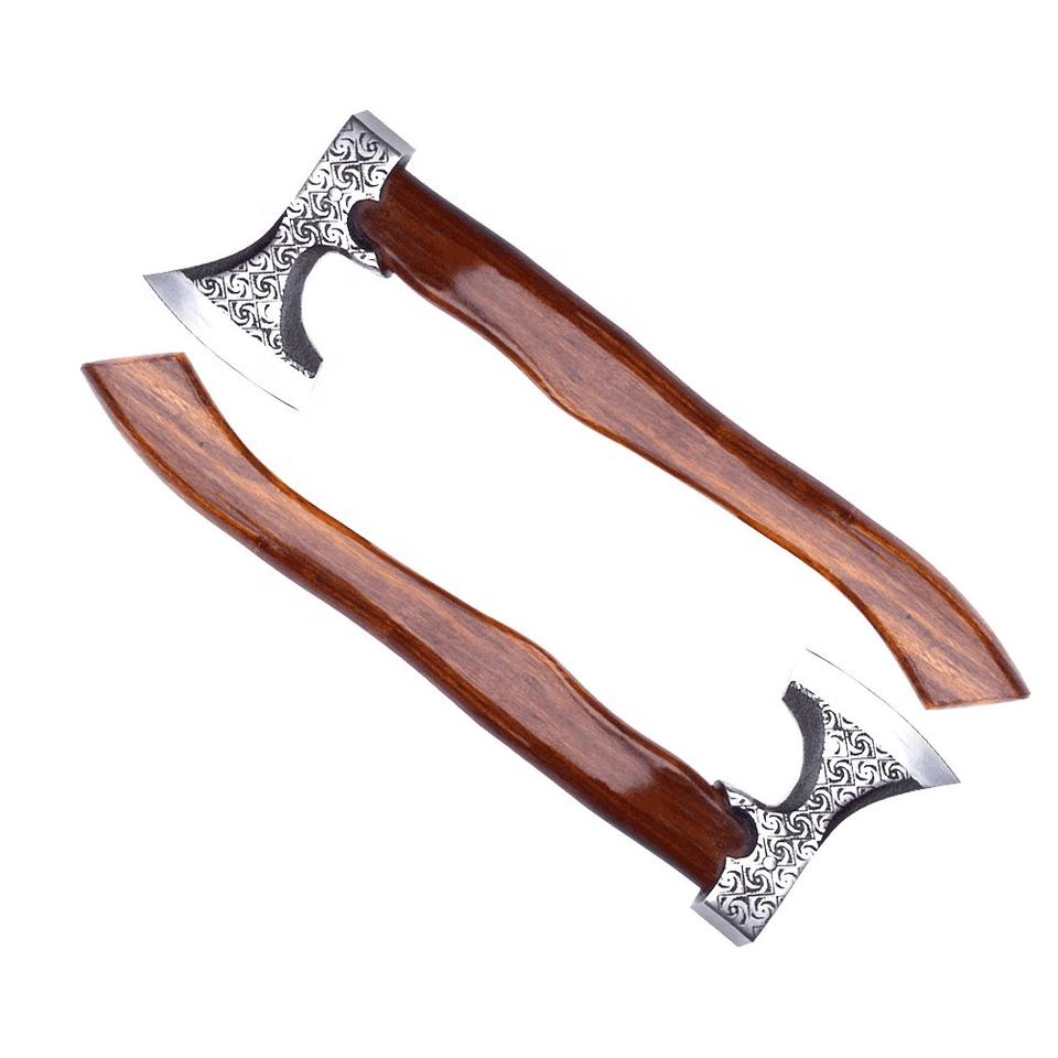 Handmade High Carbon Steel Damascus Axe Quality Outdoor Camping Cutting Tool with Wood Handle Leather Sheath Industrial Grade