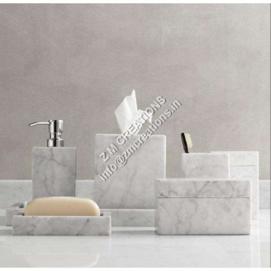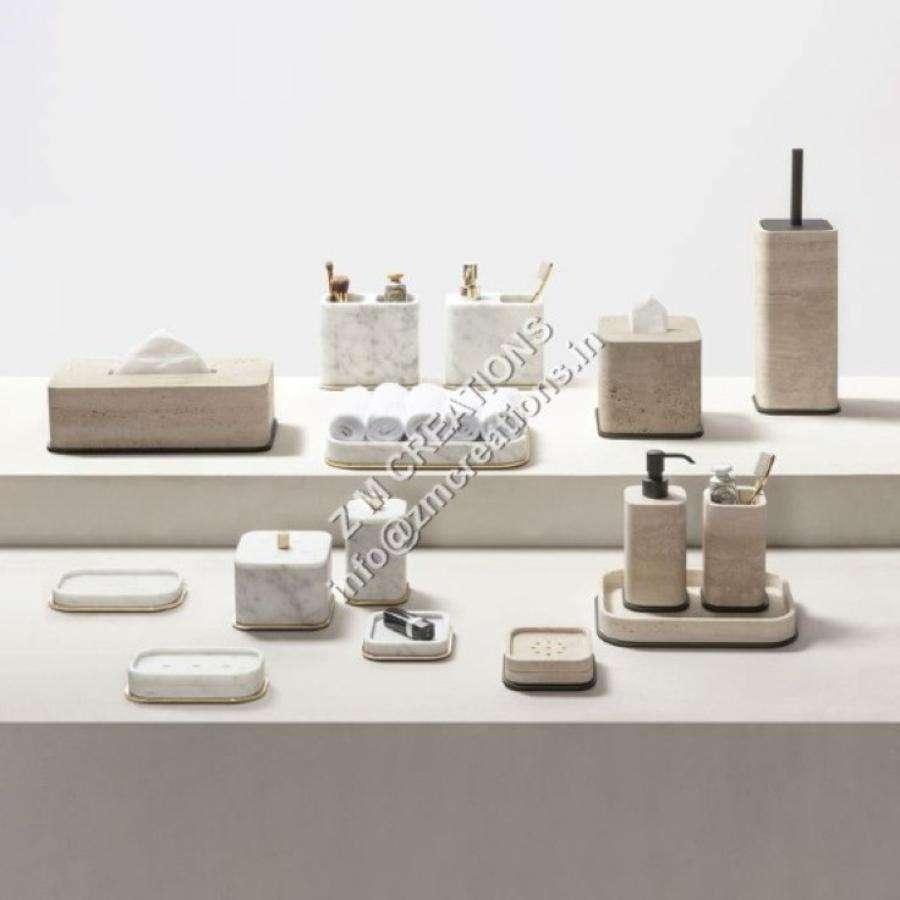 Handmade High Quality Modern Marble Five-piece Bathroom Set Waterproof Easy to Clean Home Decor Organizer