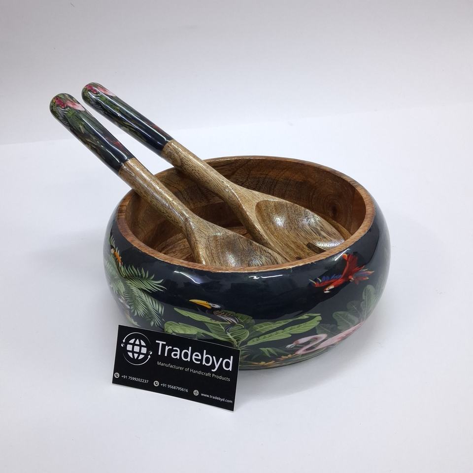 Natural Wooden Enamel Printed Bowl for Eco-Friendly Snack Serving and Kitchen Use Safe and Stylish Tableware by Tradebyd